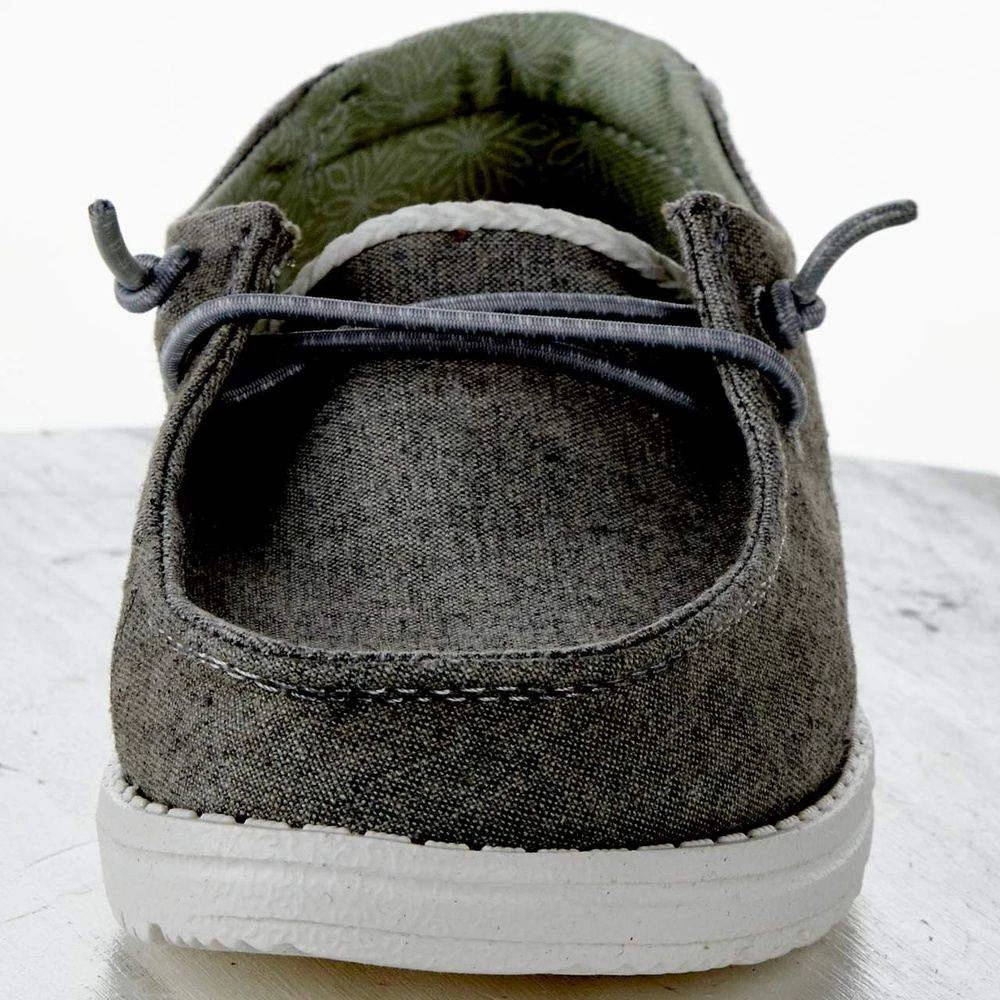 This particular Chambray version of the Wendy collection introduces an iconic low top moc with soft chambray-cotton throughout. They are soft, breathable blend of cotton and canvas. This shoe is lined with a leather-lined insole for comfort while featuring the easy-on system with elastic laces and ultralight outsole.