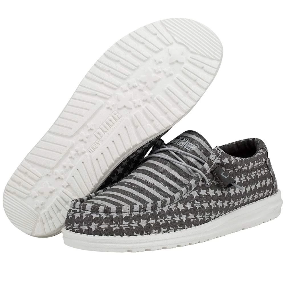 Stand out in the crowd and show your pride with these men’s Hey Dude Grey Patriotic slip on shoes.